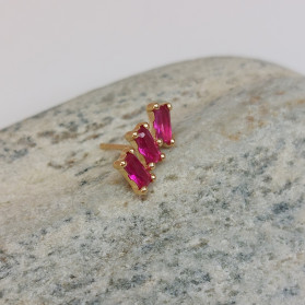 Par de pendientes de Oro Sólido con triple circonita baguette 4x2 Ideales para quienes buscan joyería fina de alta calidad, con un diseño moderno, elegante y lleno de brillo. Perfectos para ocasiones especiales o para uso diario.