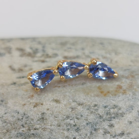Par de pendientes de Oro Sólido con triple circonita pera 5x3 Ideales para quienes buscan joyería fina de alta calidad, con un diseño moderno, elegante y lleno de brillo. Perfectos para ocasiones especiales o para uso diario.