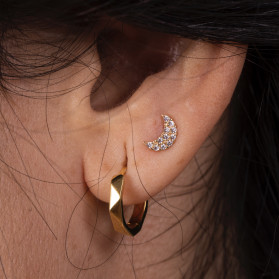 Piercing luna oreja en oro con microcirconitas redondas blancas que aportan un brillo delicado y elegante. Un diseño imprescindible en la colección, inspirado en uno de los motivos más icónicos de la joyería. La luna se asocia a la protección y a la energía positiva, convirtiendo esta joya en un amuleto perfecto para llevar a diario.